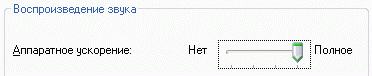 Если метки нет, загляните в системную "Панель управления", раздел "Звуки и аудиоустройства", пункт "Настройка динамиков", кнопка "Дополнительно...", закладка "Качество записи". Посмотрите здесь в разделе "Воспроизведение звука" на движок "Аппаратное ускорение" - он должен быть на максимуме.
